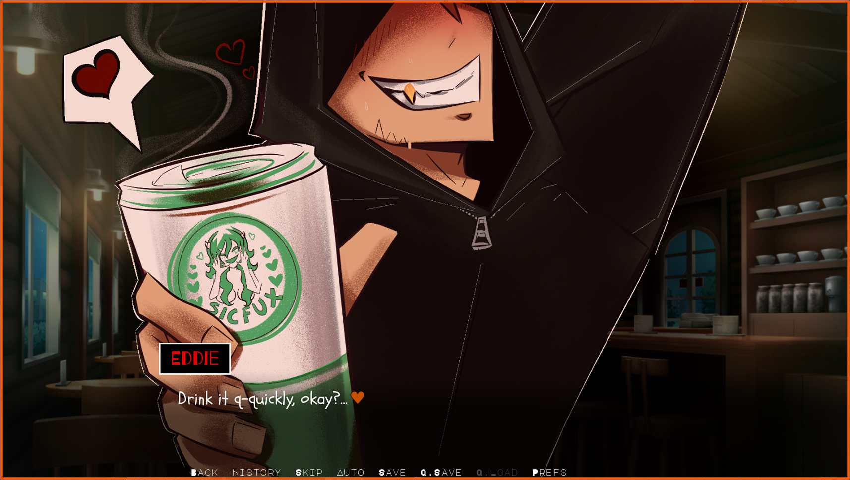 This game was so good! I loved it, I was aiming for the love ending and I got it and I am so glad because the ending was so sweet in the endearingly weird fucked up way that Eddie and the MC are.